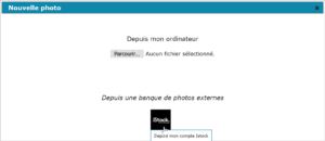 Pour ce faire, cliquez sur le bouton “nouvelle photo” dans le bloc photo de l’article. Une fenêtre proposant l’import d’une photo via un ou plusieurs fournisseurs apparaît.