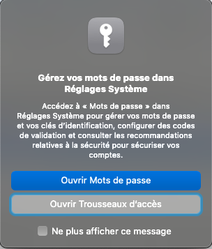 Afin de changer un mot de passe réseau enregistré sur un poste Macos, il faut suivre les étapes suivantes :