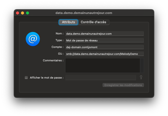 - Cocher la case Afficher le mot de passe afin de pouvoir le modifier