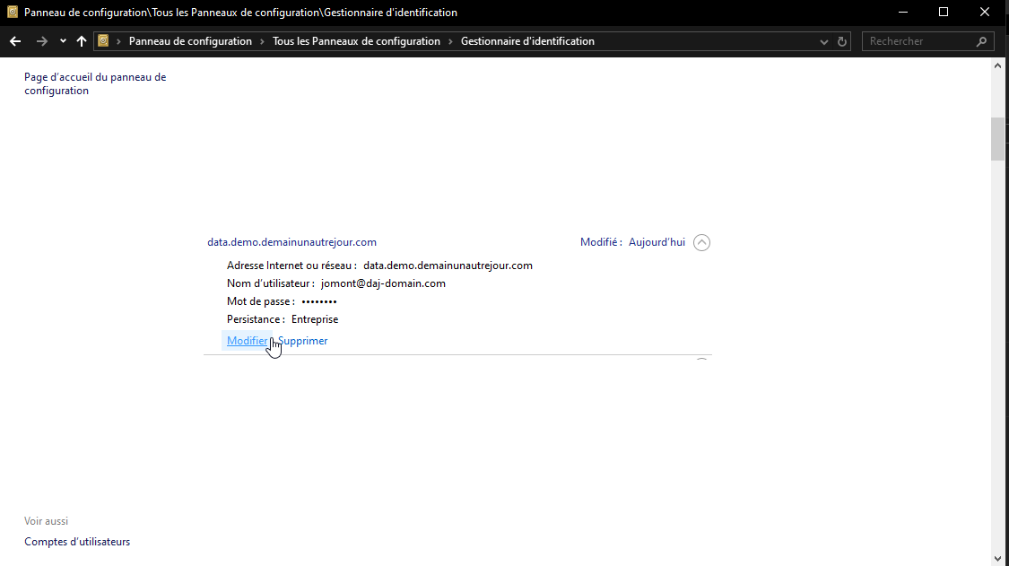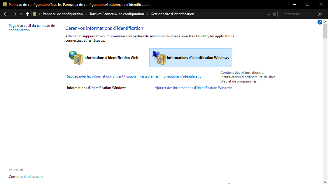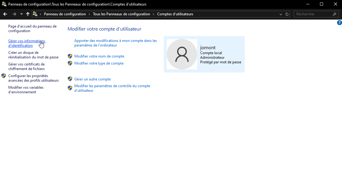 Afin de changer un mot de passe réseau enregistré sur un poste Windows, il faut suivre les étapes suivantes :