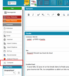 La comparaison de versions d’un article est possible entre deux canaux actifs, ou entre deux versions de l’article.