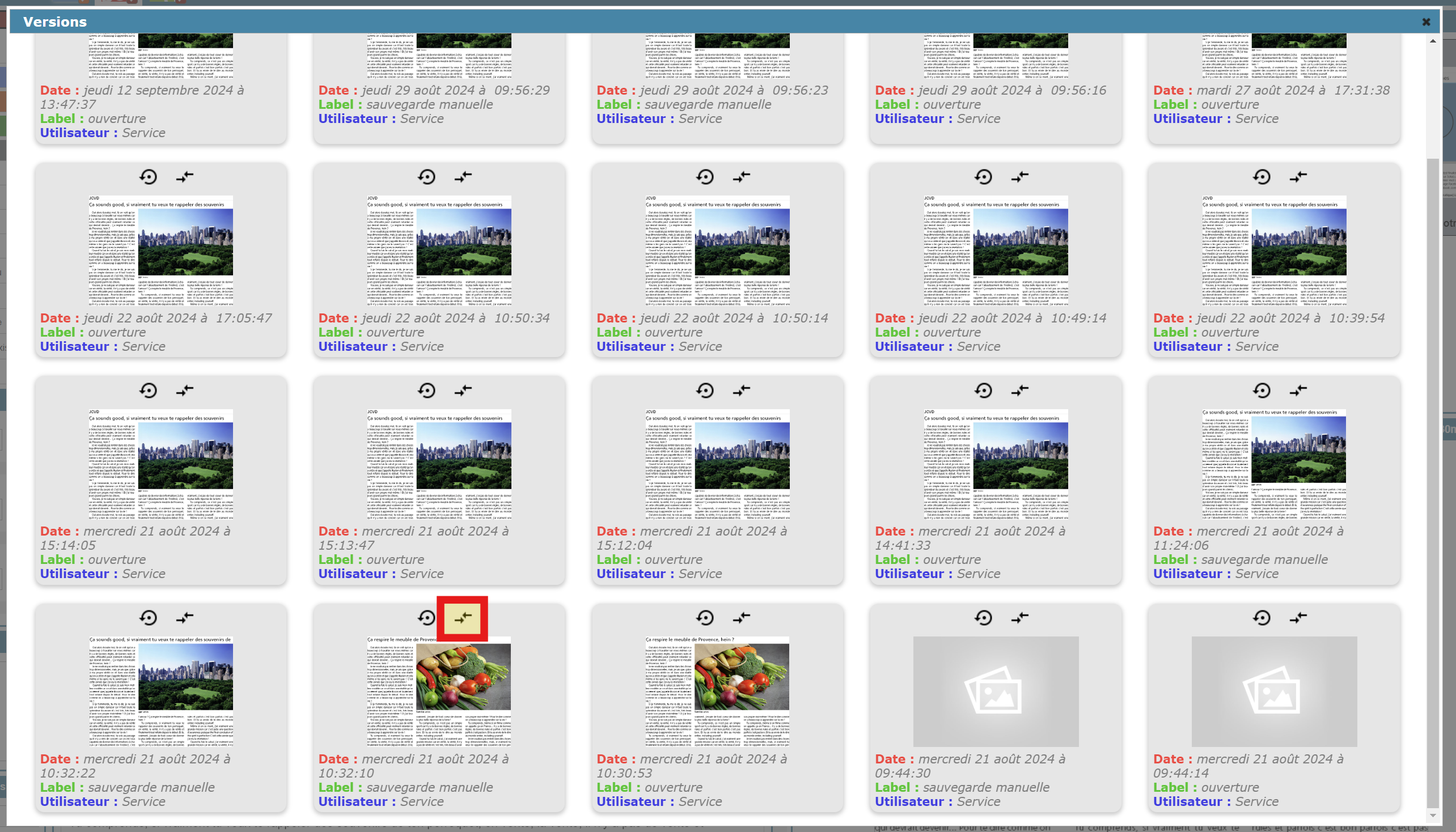 • Aucune version n’est modifiée avant d’avoir cliqué sur “valider” ;