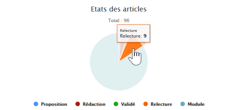 En survolant le diagramme, celui-ci devient actif et permet de mieux cerner le nombre d’articles à relire par exemple.
