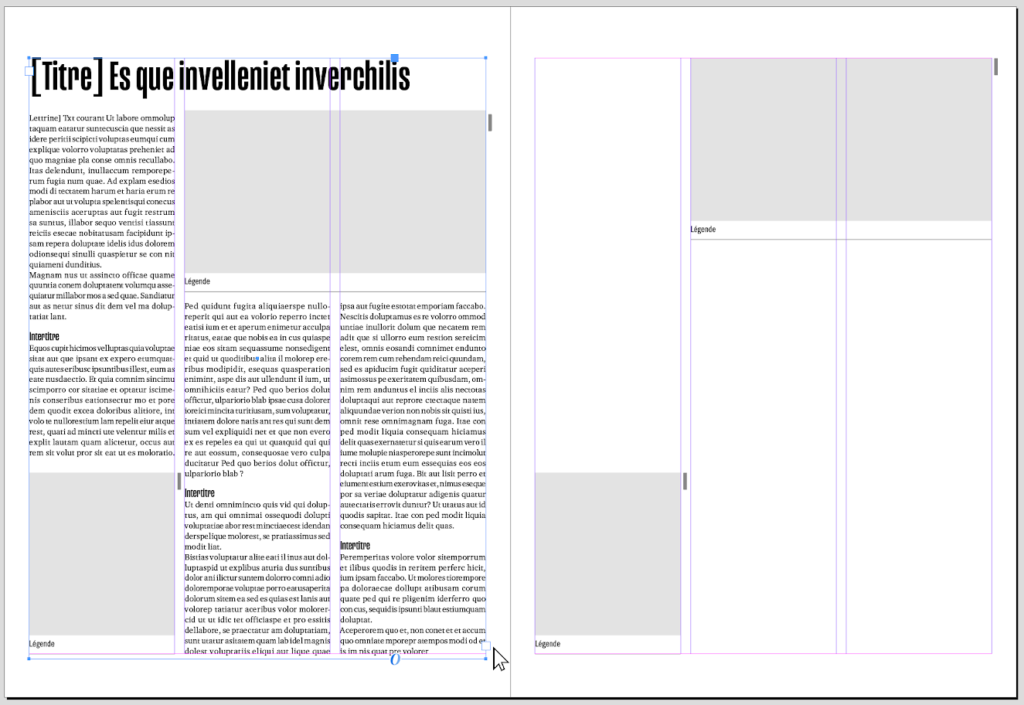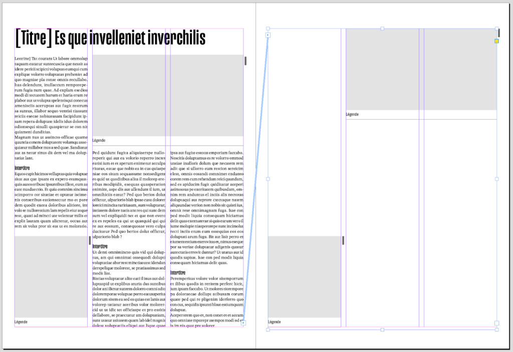 3. Monter la double page vis-à-vis en chainant le bloc texte de la page 1 au bloc texte de la page 2