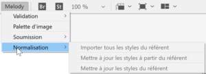 Attention, pour finaliser l’opération, il faut re-soumettre dans Melody le fichier InDesign ouvert, via l’option Soumission du menu Melody.