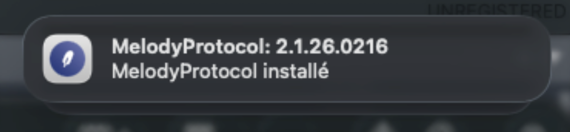 Une nouvelle exécution de l’application MelodyProtocol vous informera de sa bonne installation :