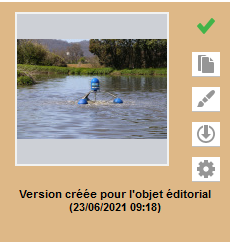 Si une image n’est pas rattachée à un article, aucune version n’est alors disponible. Ce bouton permet de créer la version d’initialisation de l’image.