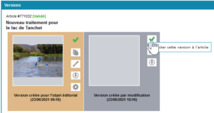 En cliquant sur la coche, l’utilisateur indique que l’image à utiliser pour cet article sera cette version.