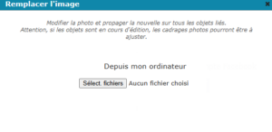 Cliquez sur “Remplacer l’image”, pour ouvrir la pop-up qui vous permettra de téléverser la nouvelle photo :
