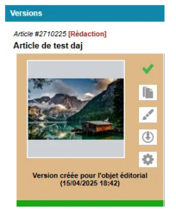 Un accès rapide aux articles contenant cette photo est mis à disposition. Il suffit de cliquer sur le bouton “Editer l’article” intégré directement dans la boîte “Versions” :