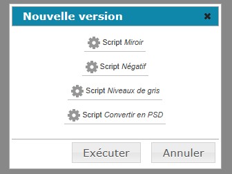 Cette action permet d’exécuter des scripts de modifications de l’image à partir du visuel original afin de créer une nouvelle version. La photo originale reste bien entendu inchangée.
