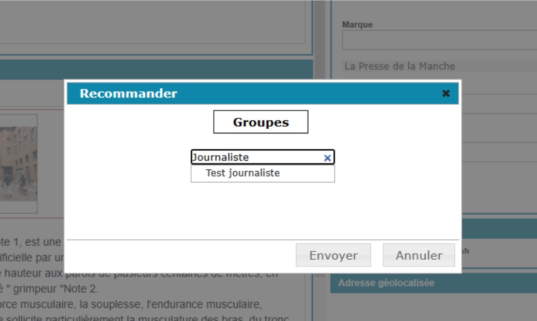 Cliquez sur “Recommander” pour ouvrir la pop-up de sélection de groupes.