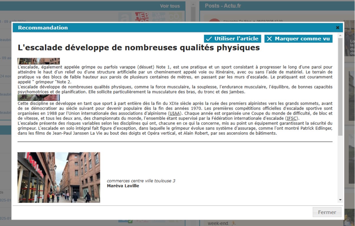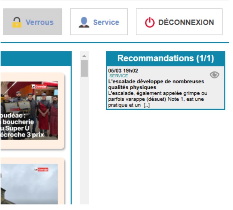 Cliquez sur l’œil pour afficher la totalité de la recommandation et utiliser ou non l’article.