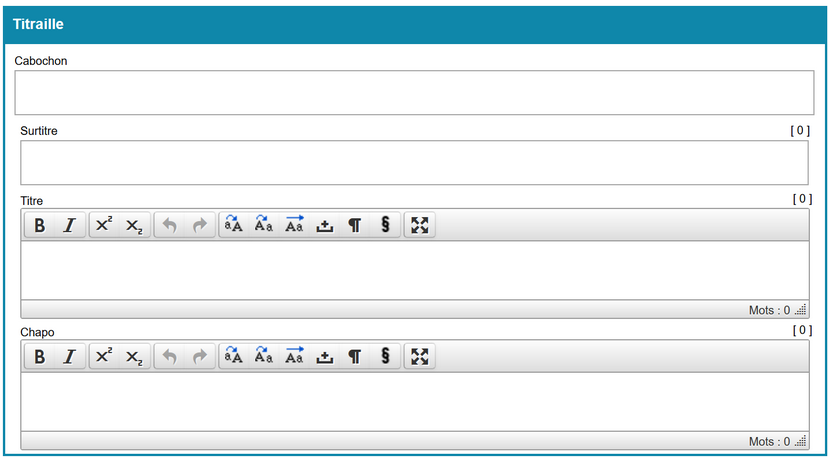 - Chapô : comme les champs précédents, le chapô sera affiché dans la prévisualisation de l’article si il est présent dans le carton sélectionné.