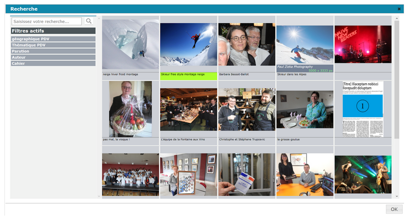 En cliquant sur la loupe, une nouvelle fenêtre s’ouvrira pour présenter les photos actuellement disponibles dans la photothèque.