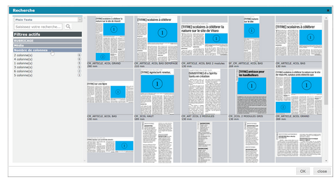 La similarité des cartons est donc propre à chaque rédaction et organisation rédactionnelle. Son objectif étant de mettre à disposition facilement et rapidement des cartons pouvant correspondre aux besoins de l’utilisateur qui réalise la mise en page.
