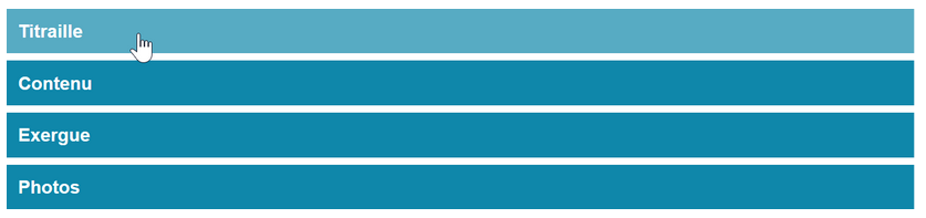 Décomposition de l’article : Pour offrir une meilleure ergonomie, les quatre zones de champ de saisie peuvent être ouvertes ou fermées en cliquant sur leur libellé (bandeaux bleus), laissant ainsi plus de place à la zone en action.