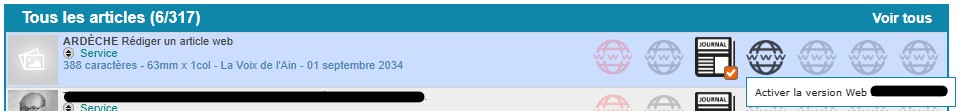 • Cliquez sur l’icône “web” pour convertir un article papier en version web.