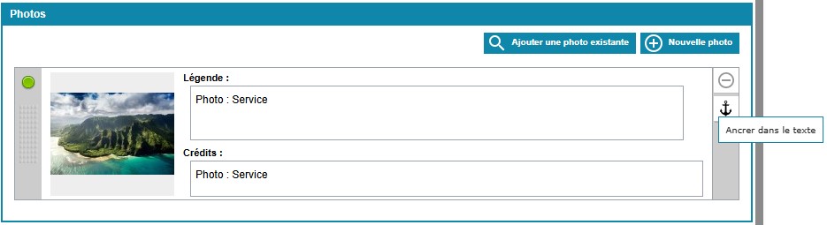 2. Cliquez sur l’ancre qui se situe au niveau de la boîte photo.