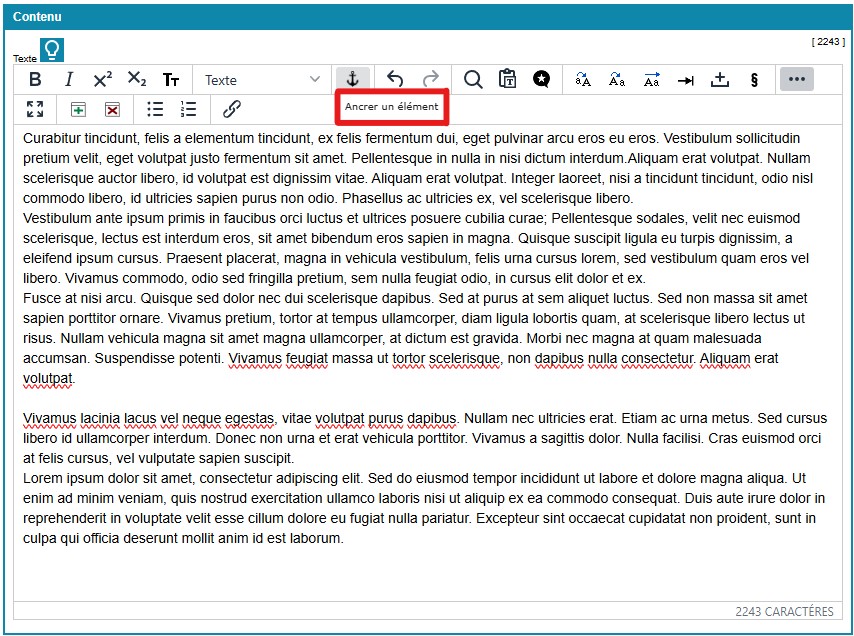 2. Cliquez sur l’ancre qui se situe dans la boîte contenu.