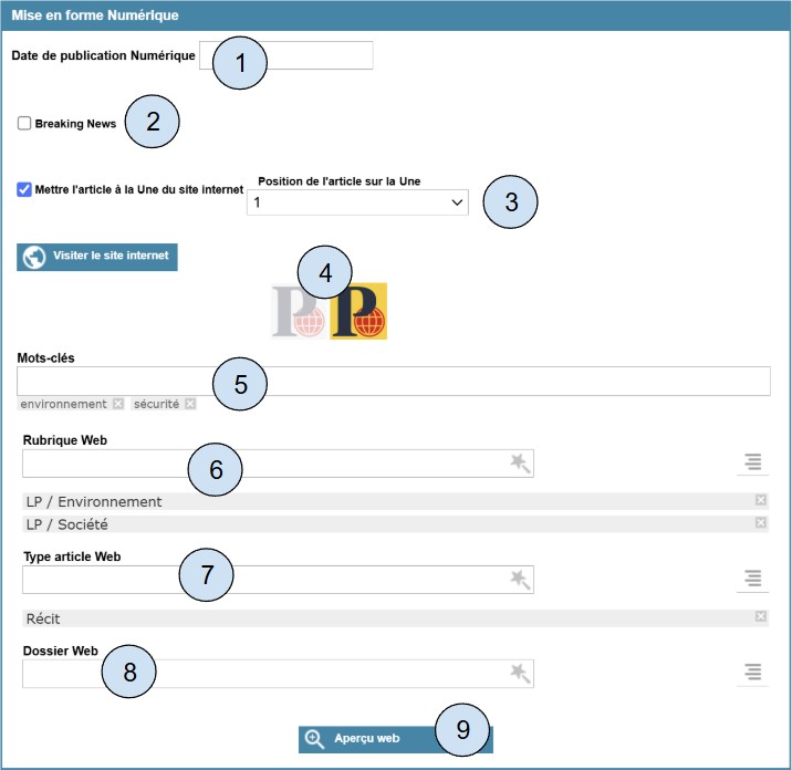 1. La date de publication numérique : champ à remplir pour programmer la date publication.