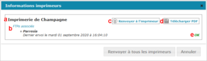 c. Bouton pour renvoyer le FTP à l’imprimeur